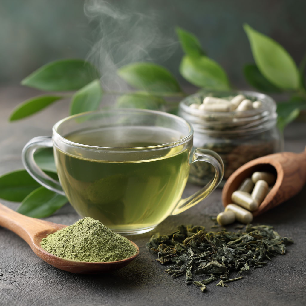 Green tea: Rich in antioxidants, green tea extract supports weight loss, energy metabolism, and stress resilience.