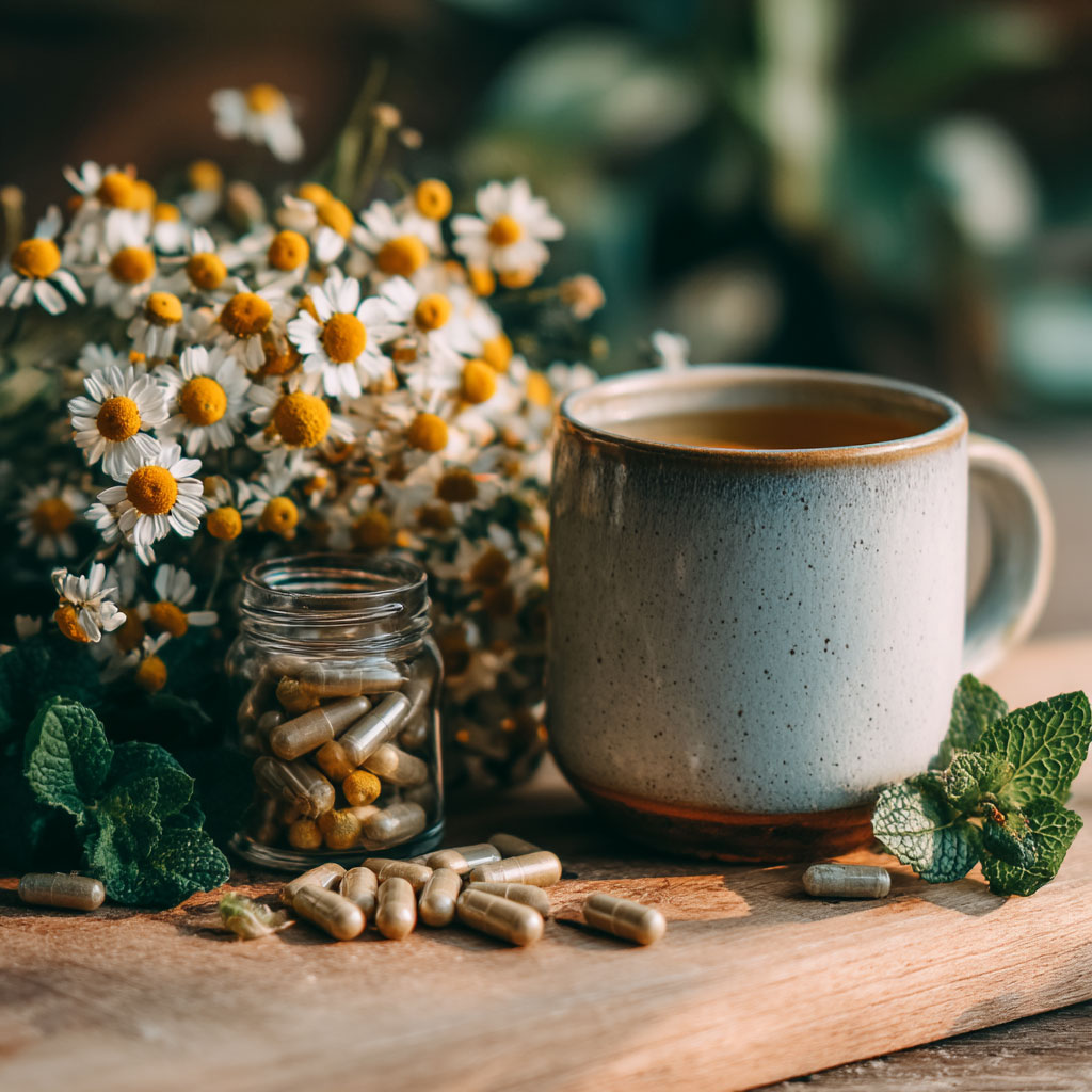 Chamomile and peppermint: Traditionally used for gastrointestinal disorders and upset stomach, now featured in many gut-supporting food supplement products.